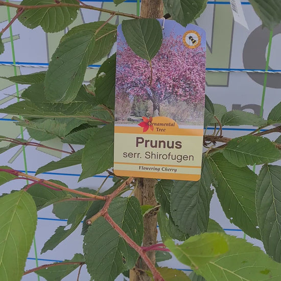 The 'Prunus serrulata 'Shirofugen'' (also known as 'Fugenzo') is an ancient and highly-prized Japanese flowering cherry, celebrated for its unique, colour-changing late bloom.